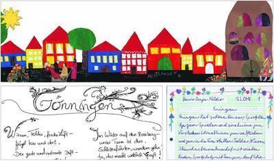Hätte es auch einen Preis für die schönste Illustration gegeben, Lisa Tochtermann (6) wäre mit ihrem liebevoll gestalteten Reutlingen-Panorama (oben) sicherlich in die engere Wahl gekommen. Sehr viel Mühe mit der Gestaltung ihrer preisgekrönten Beiträge haben sich auch Sarah Wieland (15) aus Gönningen (unten, links) und Denis Yaldir (8) gegeben.