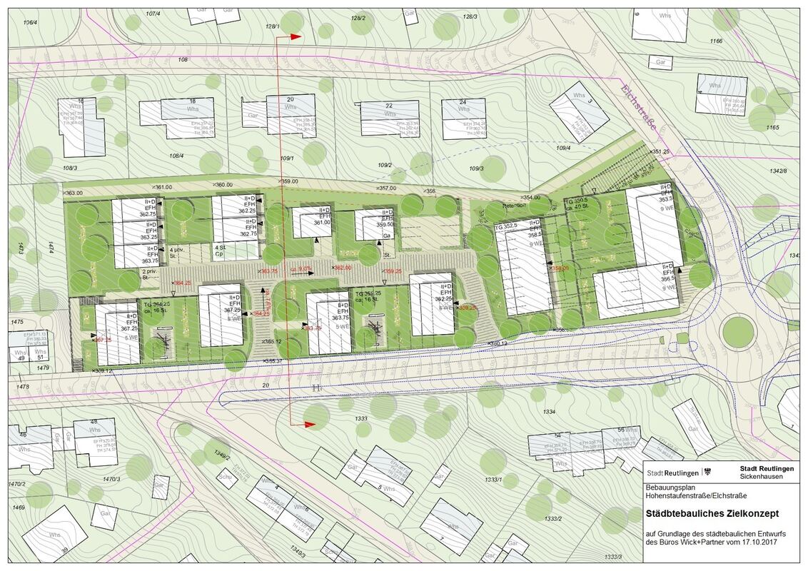 Insgesamt sollen in der Baulücke zwischen Elch- und Hohenstaufenstraße in Sickenhausen sieben Einfamilienhäuser und sieben Mehrfamilienhäuser entstehen.