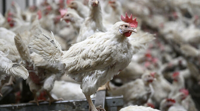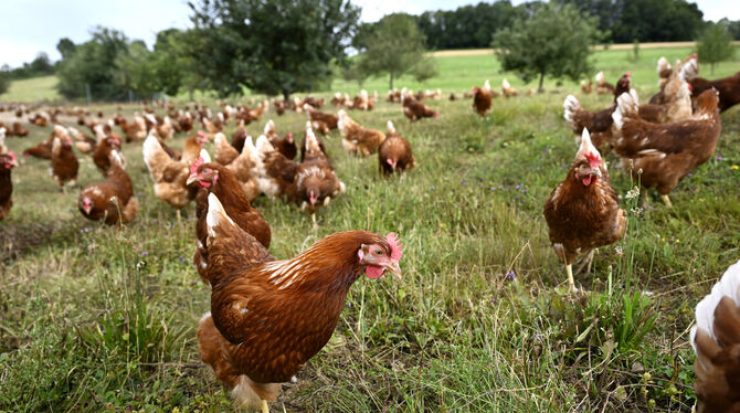 Weiße Hennen der Rasse »Sandy« auf dem Hof von Frank Zeeb. Wie laufen eigentlich Kontrollen bei Landwirten ab? Der GEA hat beim Kreisveterinäramt nachgefragt.