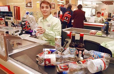 Einwegflaschen, die der Rücknahmeautomat nicht »schluckt«, werden von den Verkäuferinnen entgegengenommen.