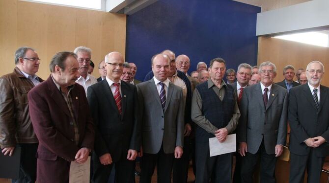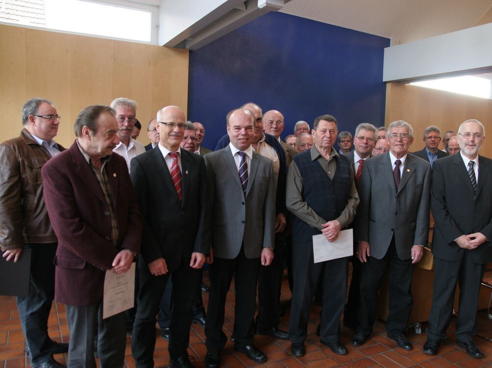 Die Sänger der Eintracht Degerschlacht zusammen mit den geehrten Mitgliedern im evangelischen Gemeindehaus.
