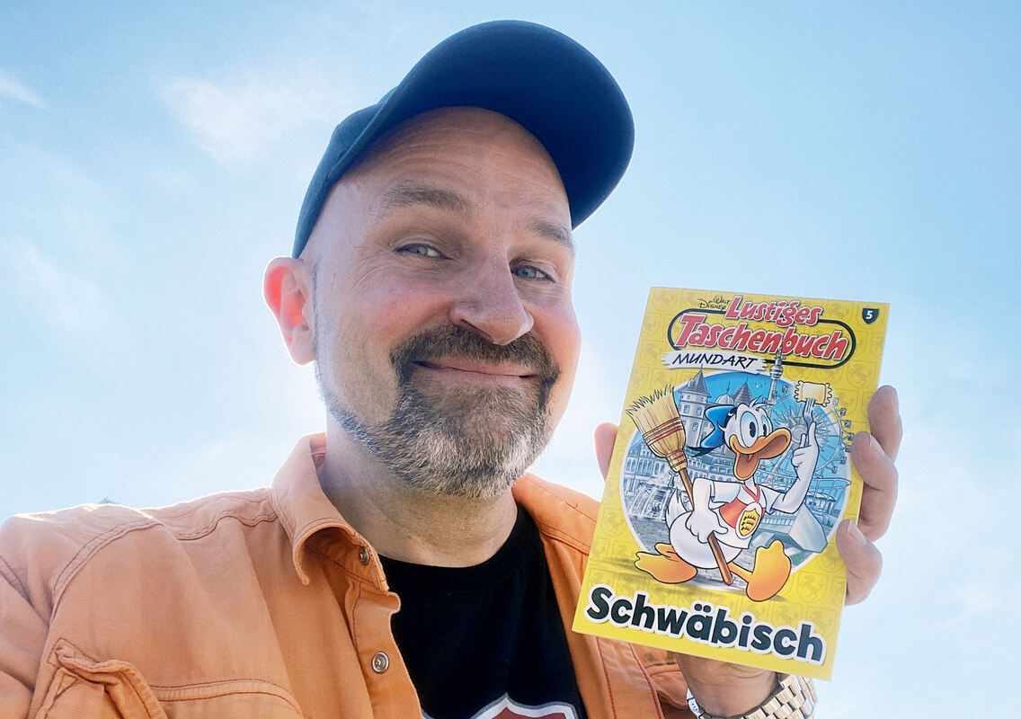 »Der Verlag Egmont Ehapa Media hat mich gebeten, das Lustige Taschenbuch Mundart mitzuübersetzen und das war mit eine große Ehre«, sagte Dodokay dem GEA. Übung hat der Reutlinger genügend, denn Mundart ist sein Metier. Mit Synchronisationen von Obama über Trump bis hin zum gesamten Bundestag - in seinen beliebten Kurzvideos lässt er sämtliche Prominente Schwäbisch schwätzen. Jetzt waren Donald, Daisy und ihre Freunde an der Reihe.