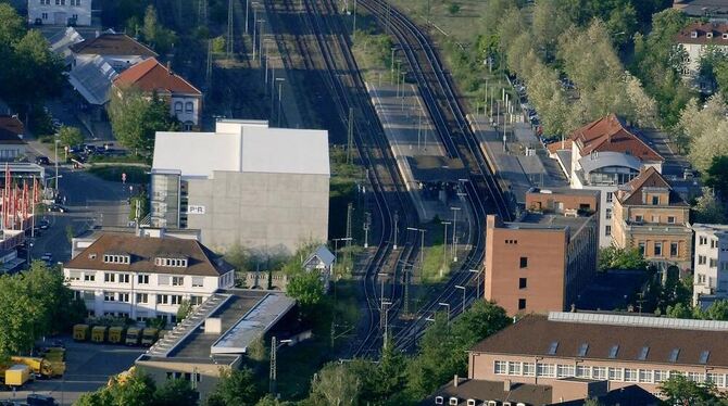 Stadtgebiet mit Entwicklungspotenzial: die Reutlinger »City Nord«. Unser Luftbild zeigt einen Teil des Wettbewerbsgebiets zwischen Media-Markt (ganz links) und Karlstraße.