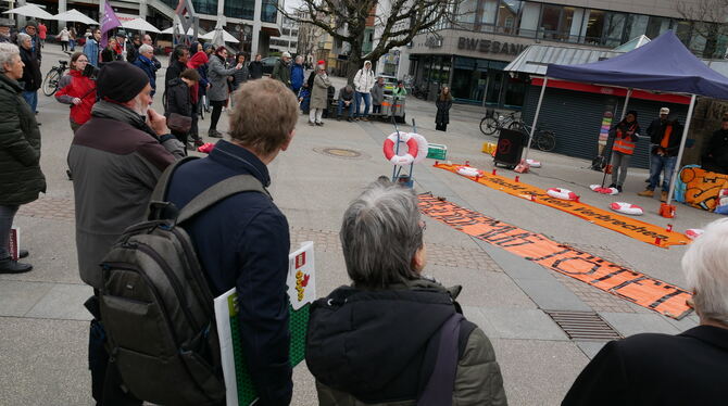 REUTLINGEN. »Wie soll gelungene Integration aussehen, wenn viele hier nicht bereit sind, ernsthaft aufeinander zuzugehen?«, fragte Jennice von der Reutlinger Seebrücke am Freitagnachmittag auf dem Reutlinger Marktplatz bei einer Mahnwache gegen Rassismus. Rund 50 Personen hatten sich dort versammelt, um den Ausführungen der Mitglieder der Seebrücke sowie von Ines Fischer als Asylpfarrerin zu lauschen. Sie berichtete von alltäglichem Rassismus, wenn etwa Menschen mit einem fremd klingenden Namen keinerlei Chancen bei der Wohnungssuche haben.