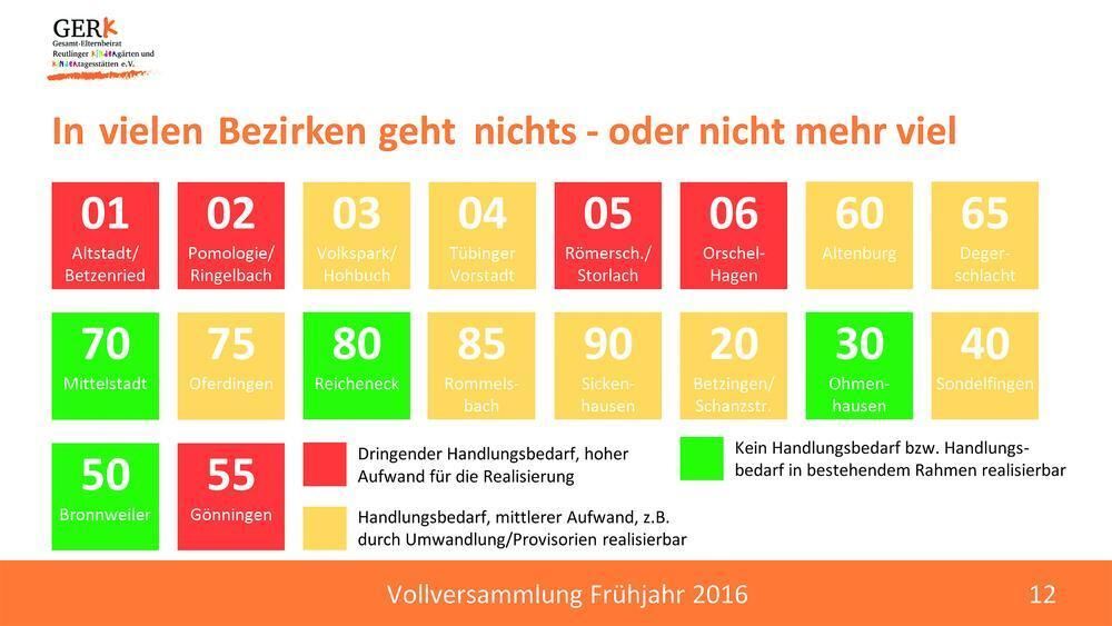 Mangelerscheinungen bei der Kinderbetreuung auf einen Blick: Der Gesamtelternbeirat hat Erkenntnisse der städtischen Bedarfsplanung anschaulich umgesetzt. GRAFIK: GERK