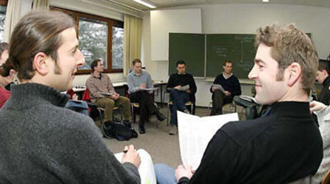 Diskutieren im Gesprächskreis: Lehramtsanwärter bei der Ausbildung.