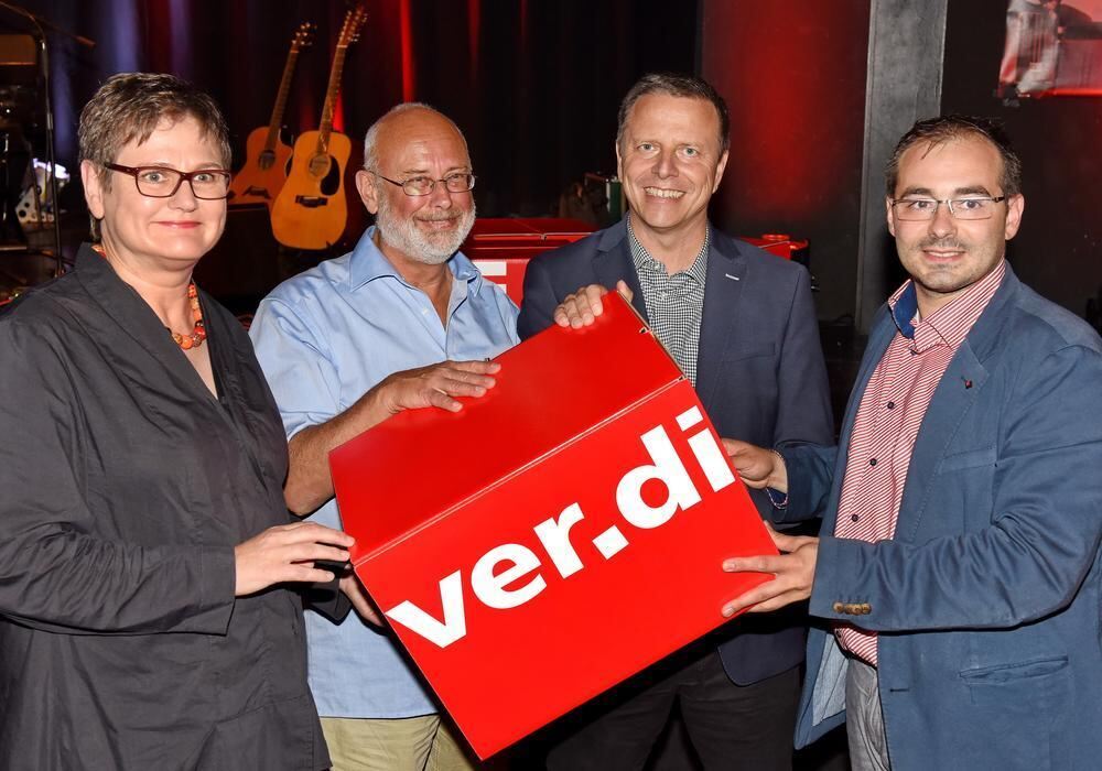 Abschied aus der Region: Martin Gross (Zweiter von rechts) mit Verdi-Landeschefin Leni Breymaier, dem Bezirksvorsitzenden Jörg Wolff und Nachfolger Benjamin Stein (von links). GEA-FOTO: PACHER
