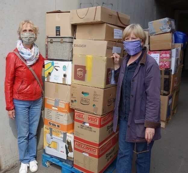 Bundesweit wurden – in einer einzigartigen Rekordzeit – mehr als 80 Nähmaschinen, kiloweise Stoffe, Garn, Bügeleisen, Scheren und Mehrfachstecker gesammelt und der Transport organisiert.