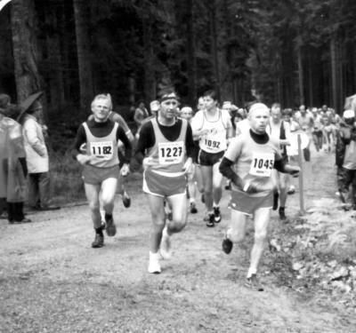 Schwarzwald-Marathon 1983 und die IGL-Läufer Helmut Riehle, Rolf Steincke und Reinhold Dölker (von links) haben mal wieder die Nase vorn.
