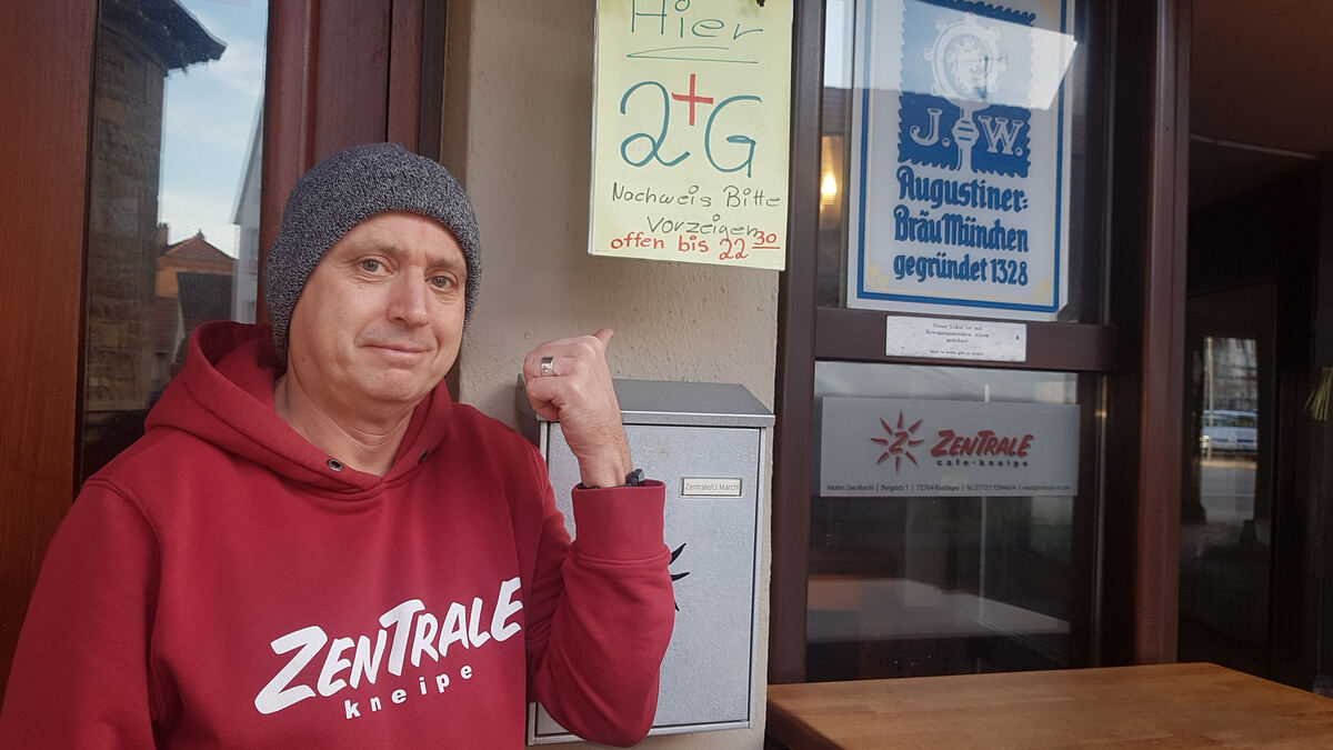 Uwe Marchl, Betreiber der »Zentrale«, zeigt auf die Einlassbeschränkungen.