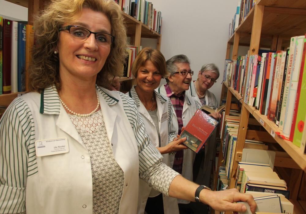 Betreuen die neue, erweiterte Patienten-Bibliothek auf dem Steinenberg: die Grünen Damen des Klinikums.