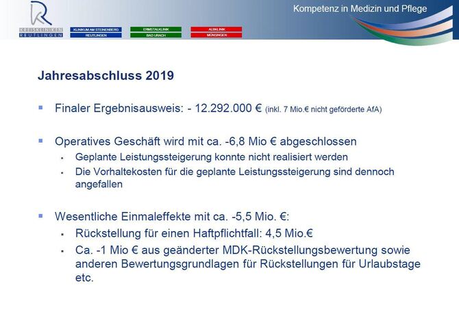 Mit dem neuen Medizinkonzept soll vor allem die wirtschaftliche Situation der defizitären Kreiskliniken verbessert werden. Die Zahlen für 2019, in der Kreistagssitzung vorgestellt, sind nicht gut: In der Bilanz steht ein Defizit im operativen Bereich von 6,8 Millionen Euro. (GEA)