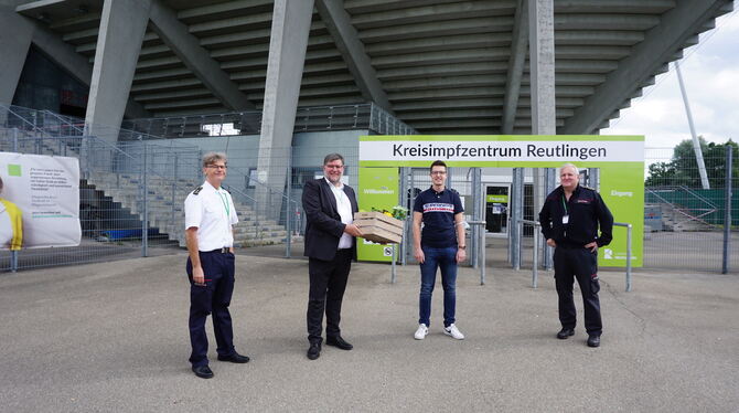 Das Kreisimpfzentrum im Kreuzeiche-Stadion ist ein Teil der Impfkampagne des Landes Baden-Württemberg, zusammen mit den Haus- und Betriebsärzten. Ein »herzliches Dankeschön« von Landrat Fiedler gilt allen Mitarbeiterinnen und Mitarbeitern im Impfzentrum an der Kreuzeiche.