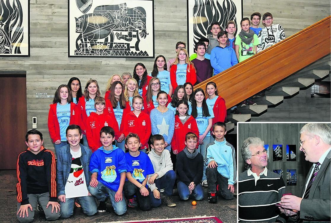 Auszeichnungen der Stadt gab’s gestern sowohl für die erfolgreichen Schulteams als auch für Ewald Walker (kleines Foto, links): Bürgermeister Robert Hahn überreichte dem engagierten Sportlehrer des BZN-Gymnasiums die Friedrich-List-Medaille der Stadt. GEA-FOTOS: MEYER