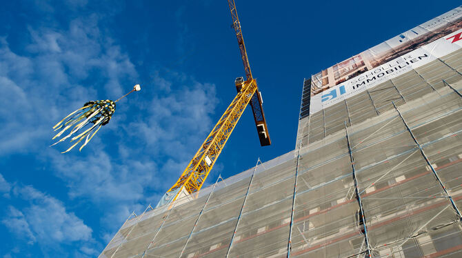 REUTLINGEN. »Sauber, schnell und ohne Unfälle« sei der Rohbau fast in Rekordzeit hochgezogen worden, sagte Investor Willi Schöller, geschäftsführender Gesellschafter der Schöller SI Immobilien GmbH. Er würdigte die Leistungen der am Projekt beteiligten Unternehmen und vor allem der rund 250 Handwerker, die das Richtfest nach den offiziellen Reden gemeinsam mit Vertretern von Stadtverwaltung und Gemeinderat feierten. Der Verkauf der Wohnungen in den oberen Etagen sei bereits erfolgreich angelaufen.