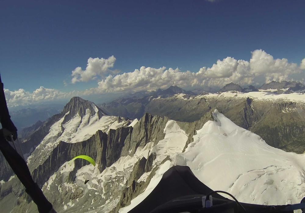 Atemberaubender Weitblick: Mit dem Gleitschirm in fast 4 000 Metern Höhe über dem Bietschhorn im schweizerischen Wallis. FOTO: REMUS
