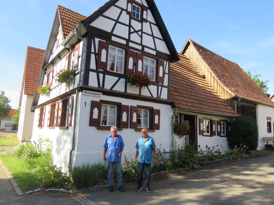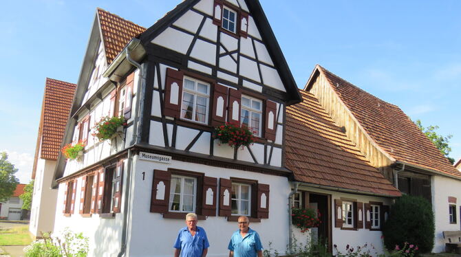 Vor dem Dorfmuseum: Melchingens Ortsvorsteher Horst Lamparth und der ehemalige Museumsführer Robert Emele. FOTO: BARTH
