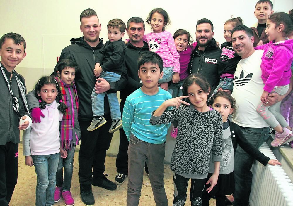 Die Security-Fachleute im Fernmeldeamt kommen nicht nur bei den Kindern der Flüchtlinge gut an. FOTO: LEISTER