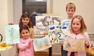 Glückliches Gewinnerquartett des Lindgren-Malwettbewerbs in Gönningen: Links die kleine Luana Puccio mit ihrer großen Schwester Sara. Rechts Ingrid Gimbel und Lukas Rauscher.