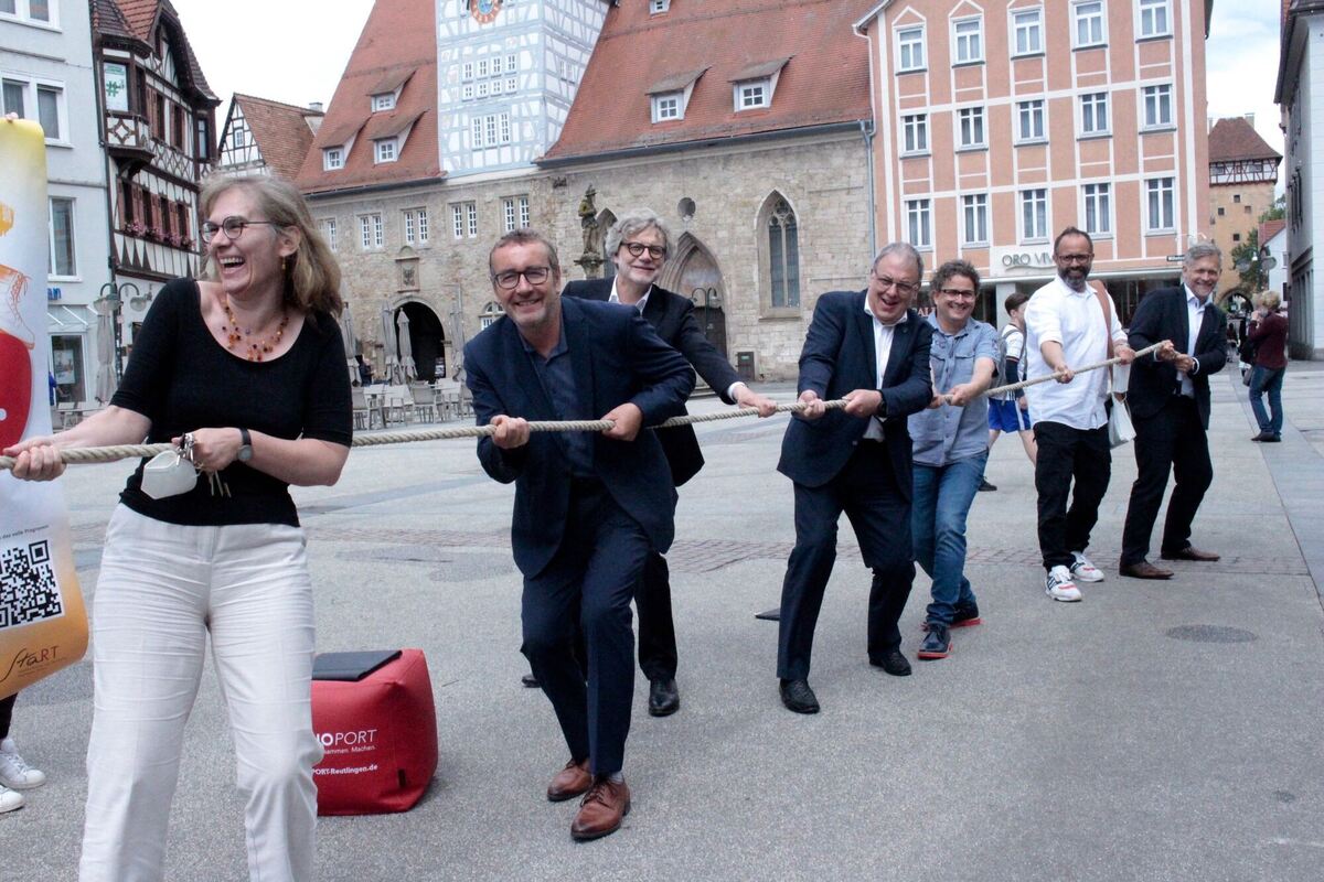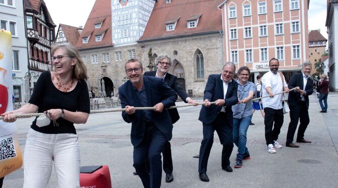 Die Akteure des »Reutlinger Sommers« ziehen an einem Strang (von links): Anke Bächtiger (Kulturamt), Peter Wilke (Amt für Wirtschaft und Immobilien), Finanzbürgermeister Alexander Kreher, Oberbürgermeister Thomas Keck, Christian Wittel (RT aktiv), Uwe Grauer (RGI) und Thorsten Kausch vom Stadtmarketing. FOTO: SPIESS