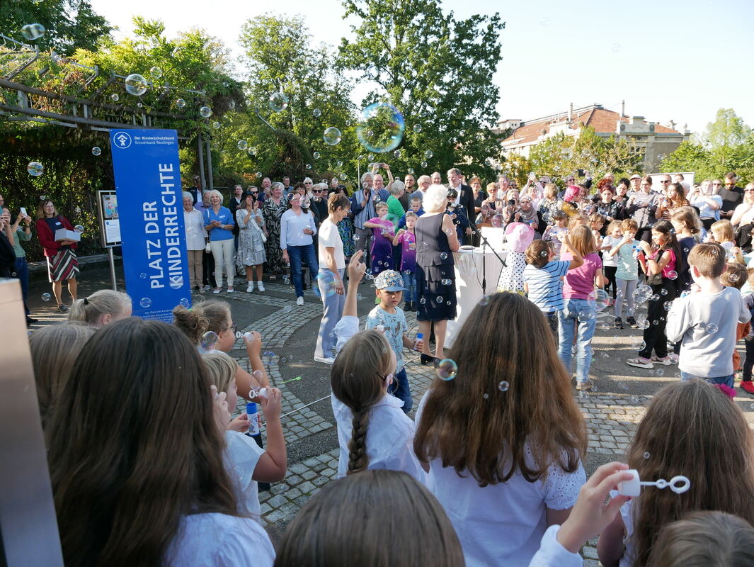 Dauerhaft dringe er aber mit seinen visualisierten Kinderrechten ins Bewusstsein der Gesellschaft. »Ich wünsche mir, dass der Platz für immer ein Ort des Nachdenkens, der Lernens, des Austausches und der Begegnung wird«, so Schlüter bevor zahlreiche Kinder mit Seifenblasen die Enthüllung der Stelen feierten. (GEA)