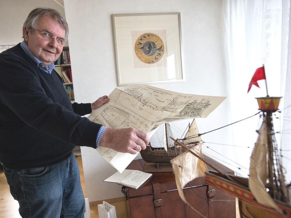 Norbert Schröter benötigt für seine Modelle exakte Baupläne der Schiffe.
