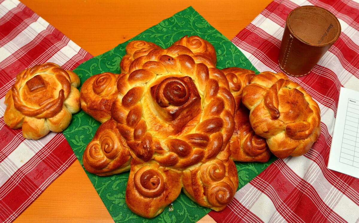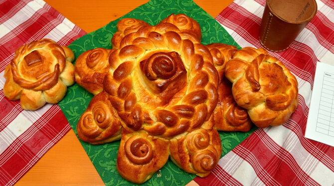 Eine Mutschel, das ist übrigens ein mürbes Weißbrotgebäck. Acht Zacken umgeben einen geflochtenen Kranz, und in der Mitte ist eine würfelförmige Erhebung, die den Reutlinger Hausberg Achalm darstellen soll. Verkauft werden sie aber längst nicht mehr nur am »Öbersten«, dem Reutlinger Stadtfeiertag, eben am ersten Donnerstag nach den Heiligen drei Königen.