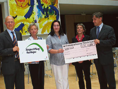 Spende fürs Frauenhaus (von links) Dr. Hans Hammann und Ursula Wendler von der Bürgerstiftung, Irene Köpf und Karin Weible vom Frauenhaus und Stiftungsvorsitzender Karl-Heinz Walter.
