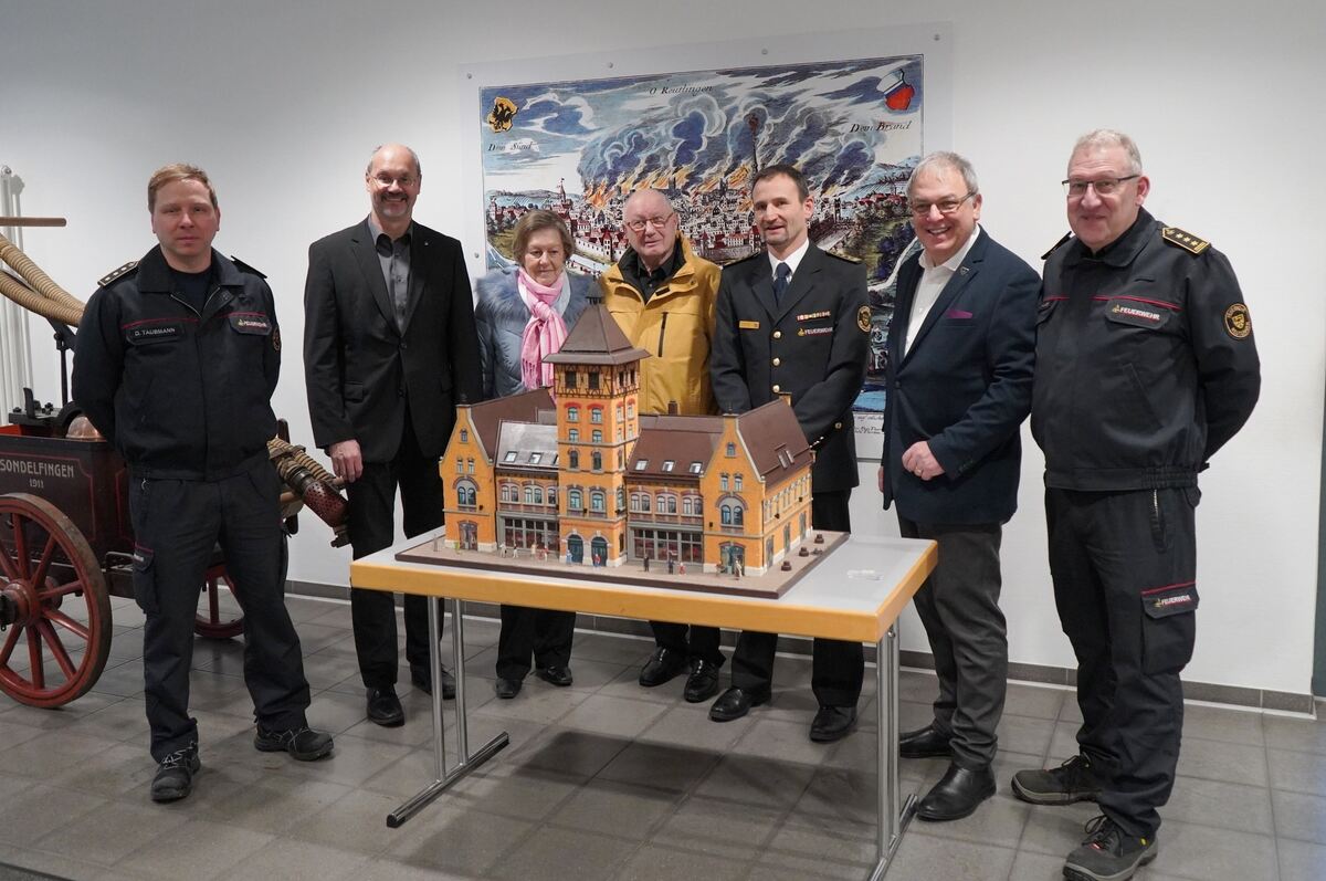 REUTLINGEN. Adalbert Licek arbeitet mit Liebe zum Detail – das wird auf den ersten Blick wird klar. Der gelernte Werkzeugbauer hat in monatelanger Eigenarbeit ein originalgetreues Modell der Alten Feuerwache in der Lederstraße angefertigt. Das Modell übergab Licek an die Feuerwehr Reutlingen.