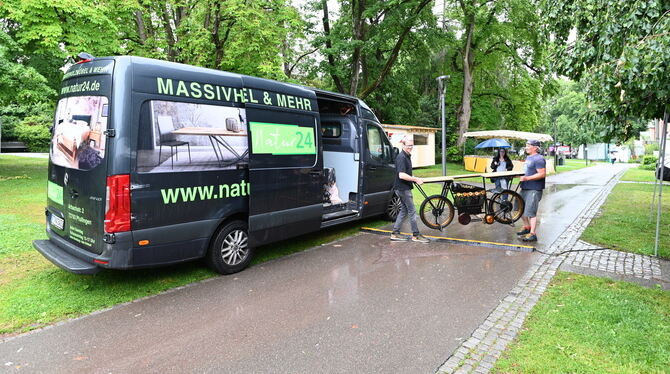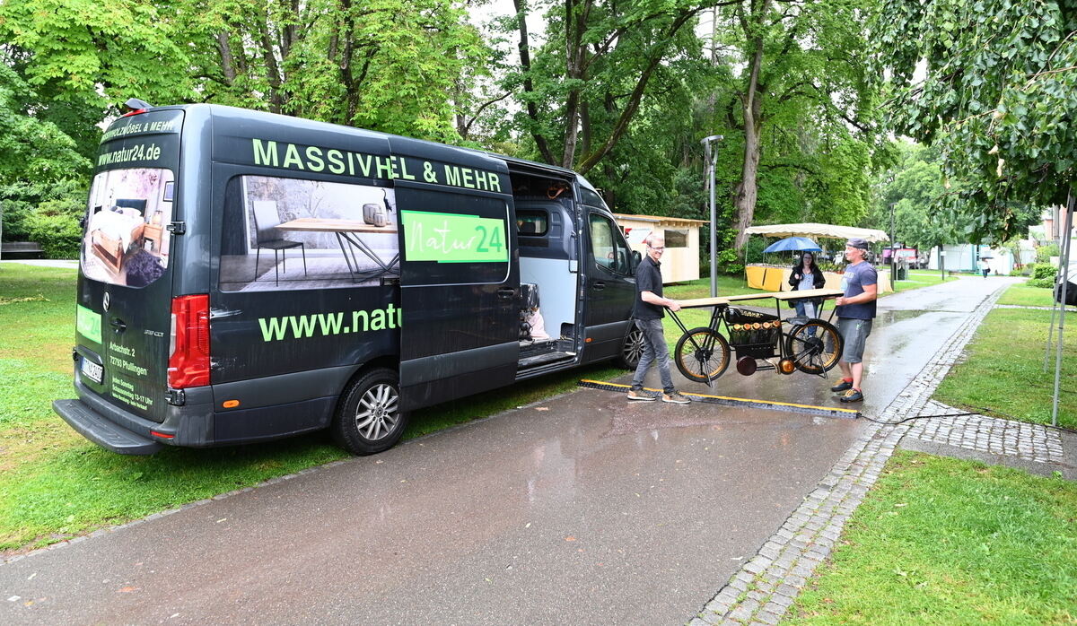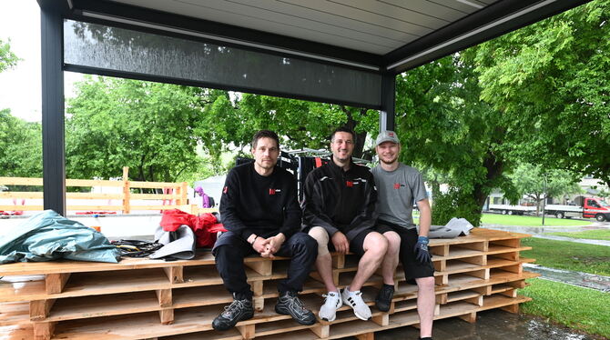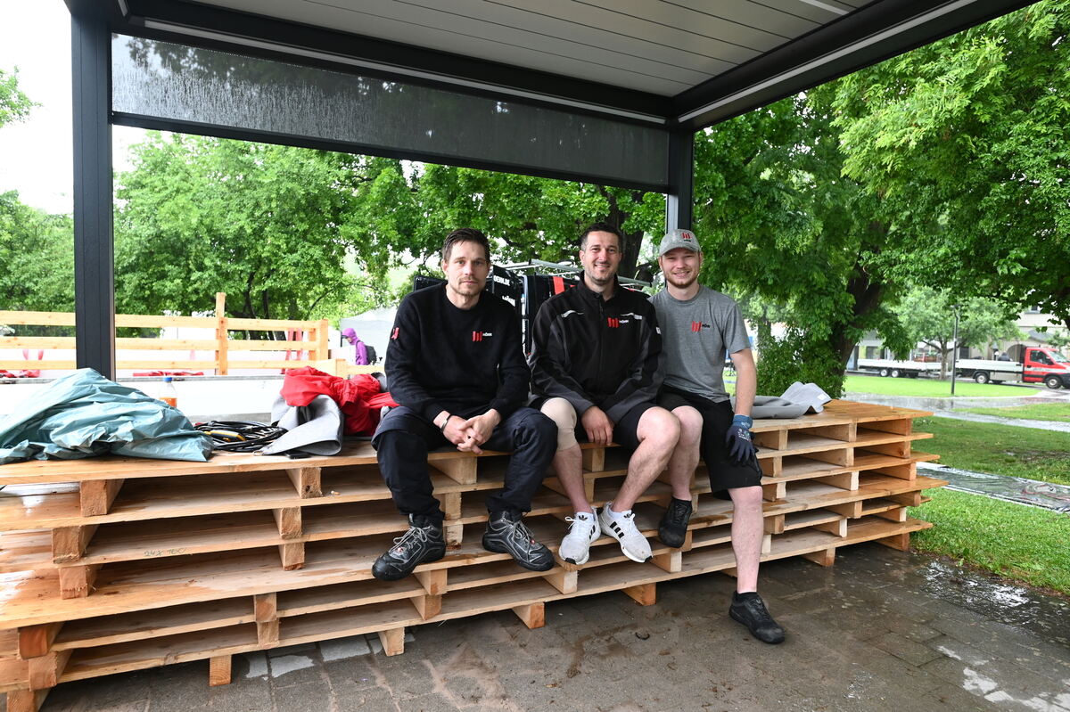 Bei strömenden Regen packen die Aussteller der GardenLife ihre Stände wieder ein.