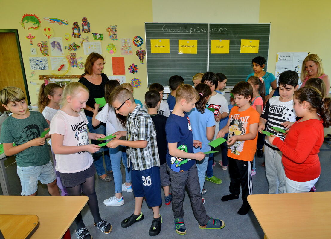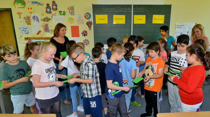 Etwas andere Greencards: Auf solchen Kärtle notieren Orschel-Hagens Schillerschüler neuerdings Besserungswünsche und Lob an Klassenkameraden. FOTO: NIETHAMMER