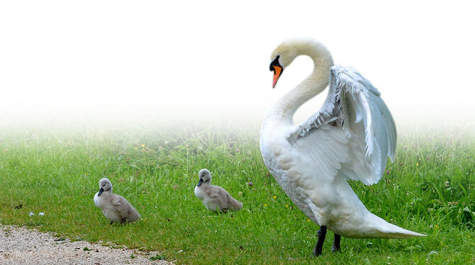 »Fotograf, nimm dich in Acht!« Höckerschwäne verteidigen ihren Nachwuchs gegenüber Störenfrieden. FOTO: NIETHAMMER