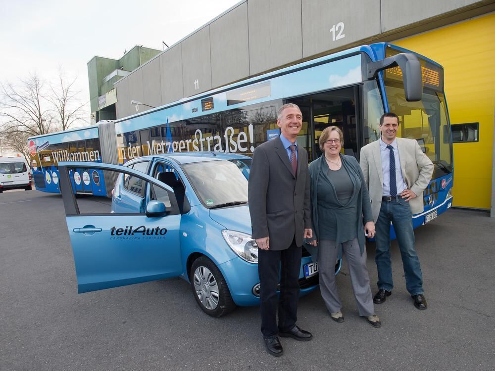 ÖPNV trifft »teilAuto«: Naldo-Geschäftsführer Dieter Pfeffer (links), Uta Kurz von »teilAuto« und RSV-Chef Mark Hogenmüller stellen das neue Kooperationsprojekt vor, das den Kunden etliche Vergünstigungen bietet.