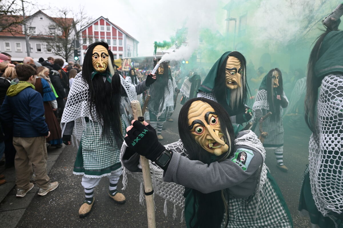 4.000 Hästräger in 72 Gruppen, rund 12.000 Zuschauer am Straßenrand - das war der 4. Betzinger Fasnetsumzug. Wenn die Betzinger Kräuterhexa auftreten, verbreitet sie dicke grüne Luft.