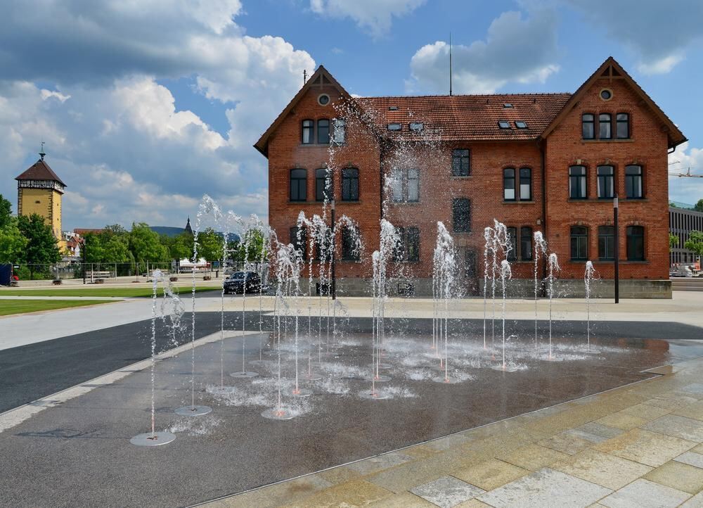 Alle 28 Fontänen des Wasserspiels beim Krankenhäusle sind beleuchtet und einzeln steuerbar.