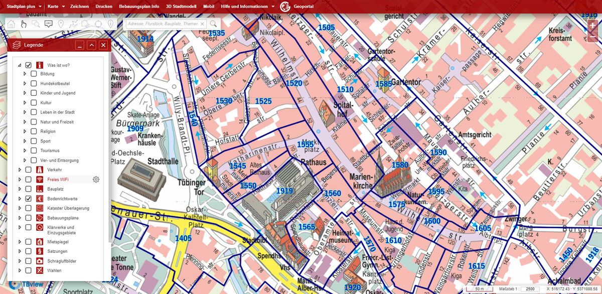 Neue interaktive Karte der Stadt Reutlingen für Freizeit und Beruf