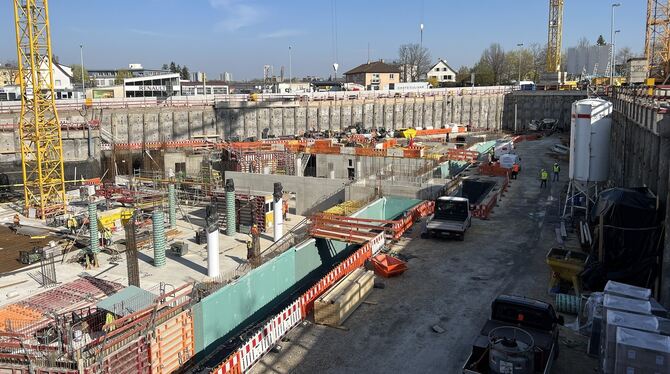 REUTLINGEN. Auf dem Gelände des zukünftigen Neubaus des Landratsamts Reutlingen sind die Bohrarbeiten für die Geothermieanlage fertiggestellt worden. Nach den kalten Tagen haben im Februar anschließend die Rohbauarbeiten begonnen. Die Microbohrpfähle, welche zur Auftriebssicherung der Bodenplatte dienen, sind eingebracht, und acht Betonier-abschnitte für die 1,30 Meter dicke druckwasserdichte Bodenplatte sind bereits fertig eingebaut. Zudem sind 15 Prozent der Betonwände bereits fertiggestellt.