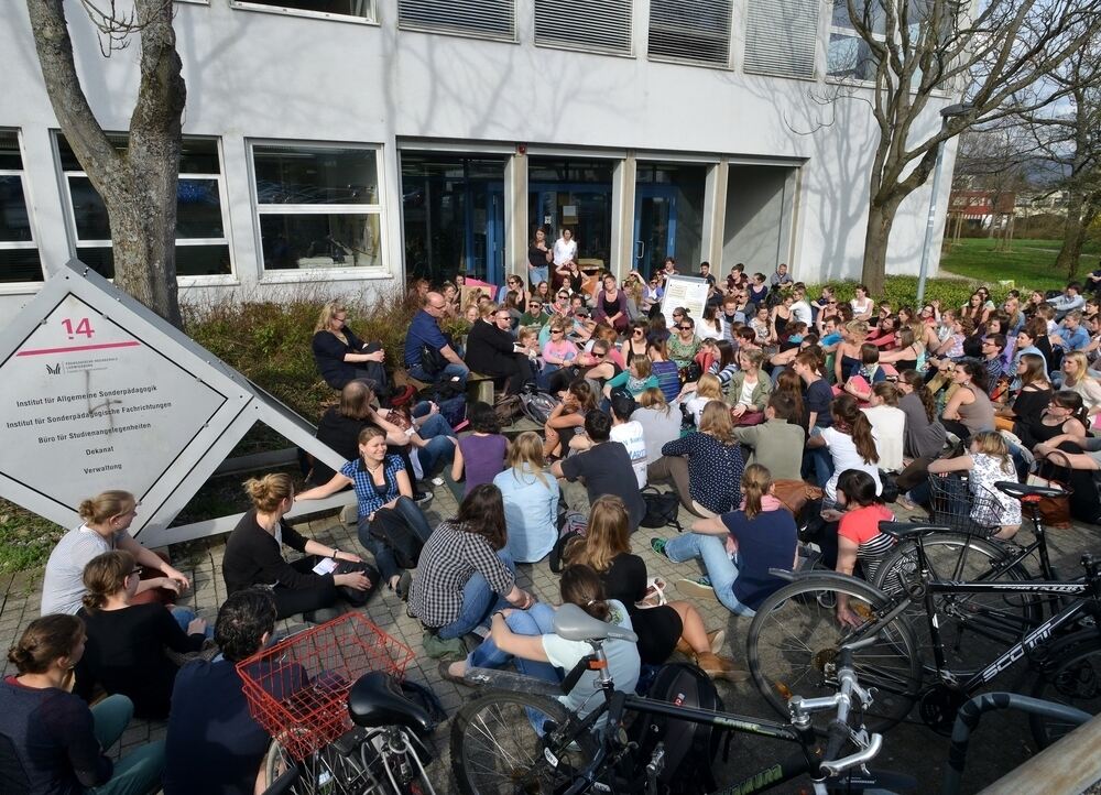 Archivbild vom April 2013: Studierende der Fakultät für Sonderpädagogik protestierten auf dem Hochschulcampus mit einem Sitzstreik gegen die Schließung des Standorts Reutlingen. FOTO: NIETHAMMER