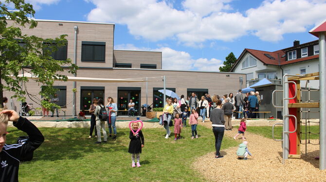 Sowohl Hahn als auch Gabriele Gaiser dankten allen, die die Einrichtung ermöglicht hatten. Zahlreiche Vertreterinnen und Vertreter von Ortschaftsrat, Gemeinderat, Stadtverwaltung, Eltern-Initiativvereinen und dem Arbeitskreis Kleinkindergruppen Reutlingen waren zum Fest erschienen. Der Dank galt auch der Projektleitung, die hervorragende Arbeit geleistet habe. Viele, unter anderem die örtliche Männerwerkstatt, hätten sich überaus engagiert eingebracht.
