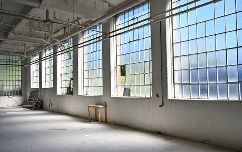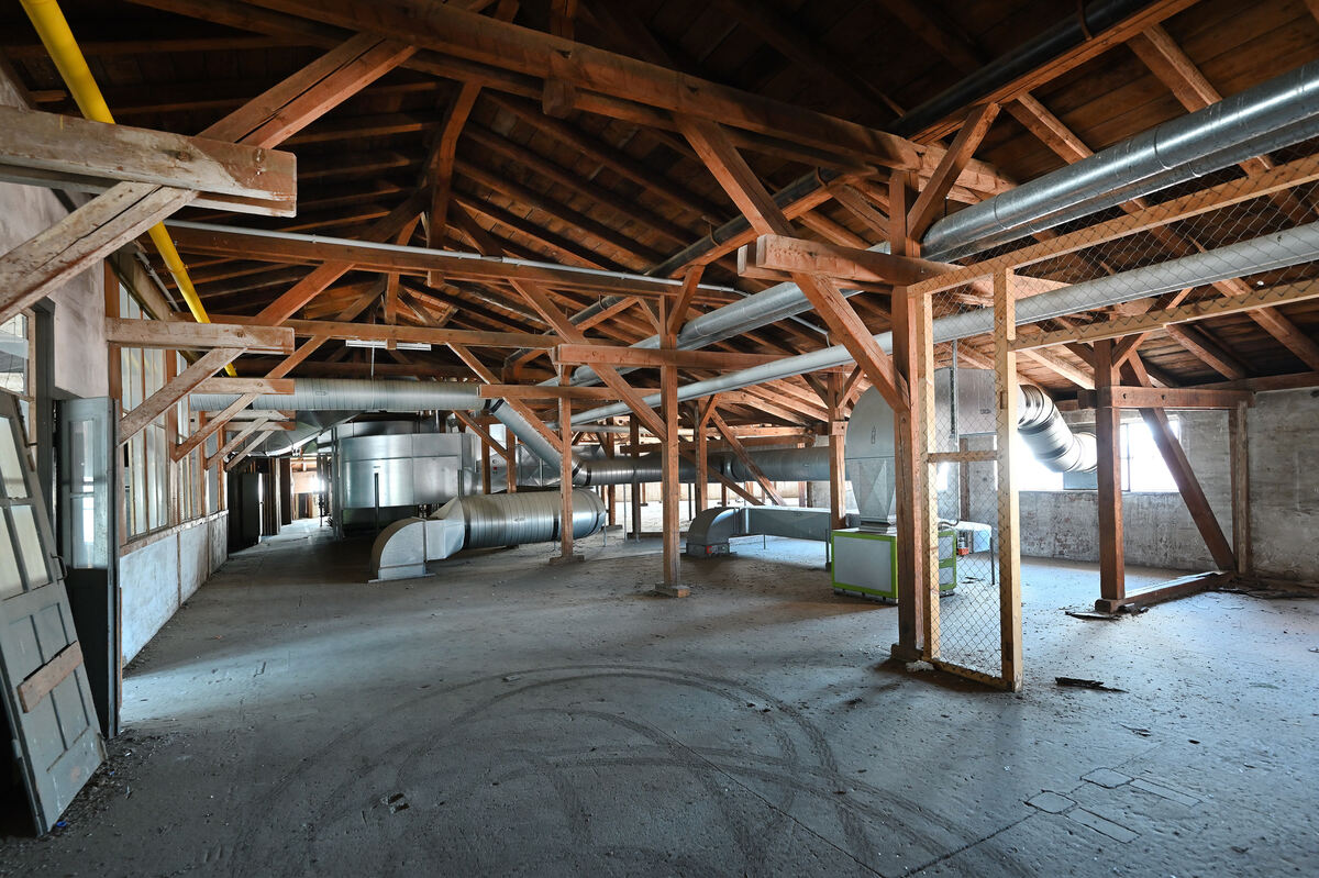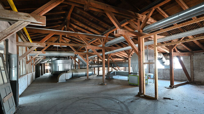 Äußerlich bleibt der markante Backsteinbau der alte. Vom Dachgeschoss aus geht der Blick über die Fabrikdächer gen Alb.