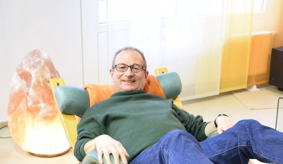 Ganz entspannt: Auf dem Spezialstuhl auf Traumreise gehen.
