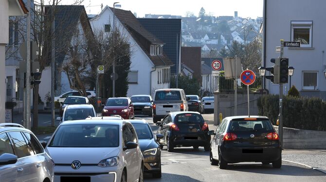 Morgens, mittags und abends herrscht zum Leidwesen der Rommelsbacher aktuell Dauerstau auf der Umleitungsstrecke der B 464 durch Rommelsbach. FOTO: ZENKE