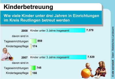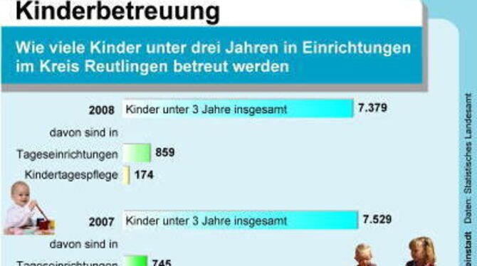 REUTLINGEN. Die Zahl der betreuten Kleinkinder steigt. Im Kreis Reutlingen besuchten vergangenes Jahr rund 14 Prozent der unter Dreijährigen eine Tageseinrichtung oder waren bei Tagesmüttern untergebracht. Ein Jahr zuvor lag diese Quote noch bei 12,1 Prozent, das geht aus den Daten des Statistischen Landesamtes hervor. Im landesweiten Durchschnitt erreicht die Kleinkindbetreuung eine Quote von 13,7 Prozent.