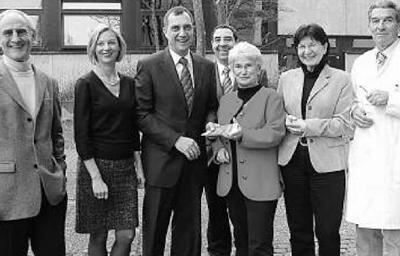 3600 Euro für die Brückenschwestern: (von links) Professor Peter Hess mit den Spendern Michaela und Andreas Rühl, Oliver Bredel, Suse Gnant, Sabine Brudermüller-Fleischle und Professor Siegfried Kunz.