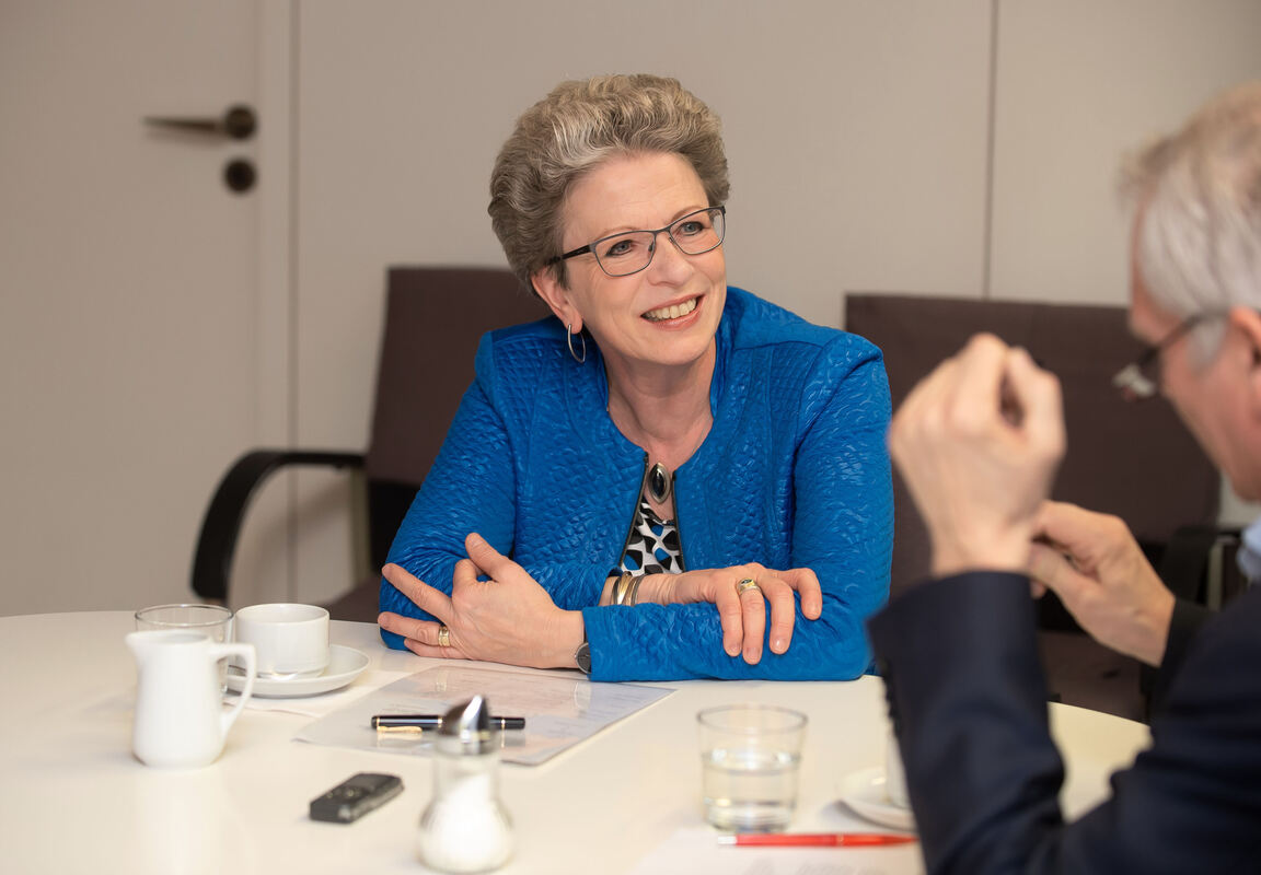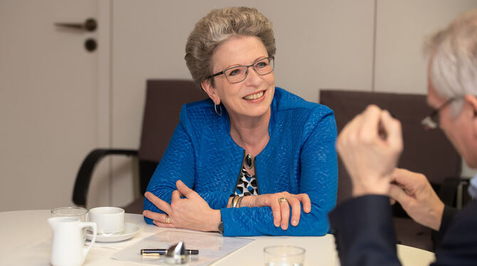 Rückblick auf 16 Amtsjahre: Reutlingens OB Barbara Bosch im Gespräch mit GEA-Lokalchef Roland Hauser. FOTO: TRINKHAUS