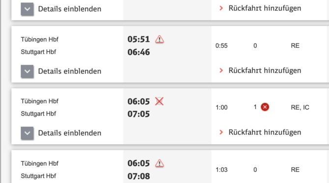 Bahn warnt vor Verkehrs-Behinderungen zwischen Tübingen und Stuttgart