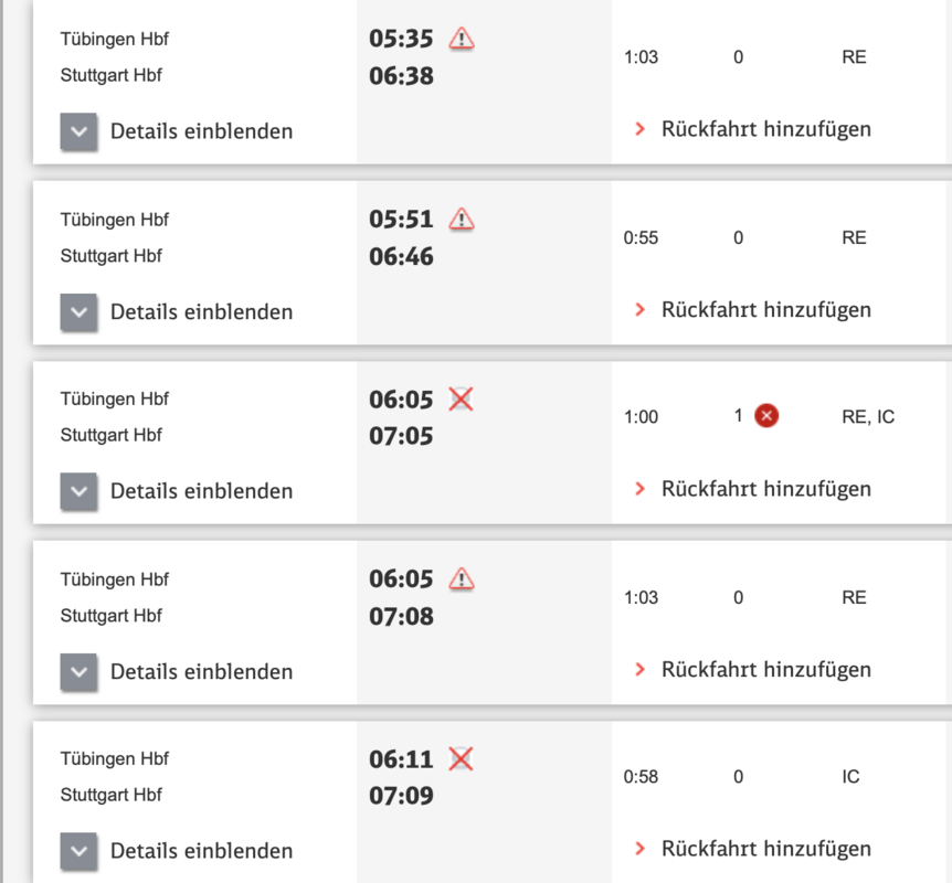 Keine Züge vor 8 Uhr nach Stuttgart