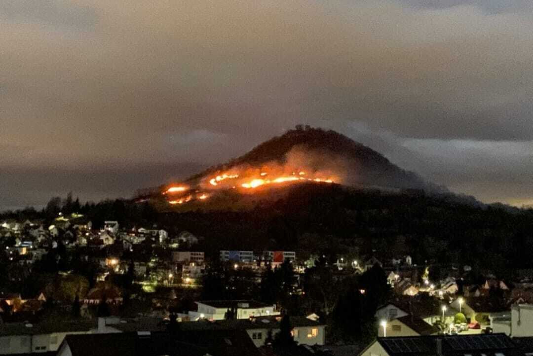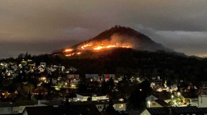 Glutreste einer Feuerstelle an der Achalm könnten laut einer Pressemitteilung der Polizei ersten Ermittlungen zufolge möglicherweise die Ursache für den Flächenbrand an der Achalm in der Nacht auf Montag gewesen sein. Bis zum Eintreffen der Einsatzkräfte stand dort eine Fläche von etwa fünf Hektar Wiese in Flammen. Verletzt wurde niemand, Sachschaden gab es auch nicht.