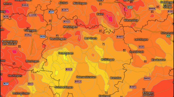 Die Windgeschwindigkeiten in Deutschland nehmen immer weiter zu. Auf dem Feldberg wurde laut kachelmannwetter.de die bislang stärkste Böe Deutschlands mit 124 Stundenkilometern registriert. Die Wetterstationen im Kreis Reutlingen haben deutlich niedrigere Werte gemessen. 33 Kilometer pro Stunde in Sonnenbühl und 39 in Münsingen.