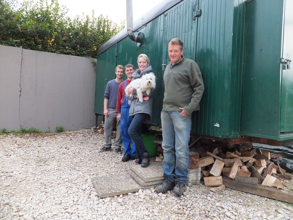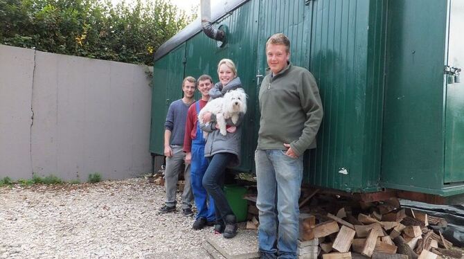 Fabian Müllerschön (von links), Marco Hänsel, Franziska Müllerschön und Frieder Class gefällt's in ihren Bauwagen. GEA-FOTO: IGL